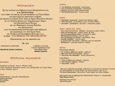 Το παρών αναμένεται να δώσει και ο σεβασμιότατος Μητροπολίτης Πατρών κ.κ. Χρυσόστομος, ο οποίος θα απευθύνει και χαιρετισμό.