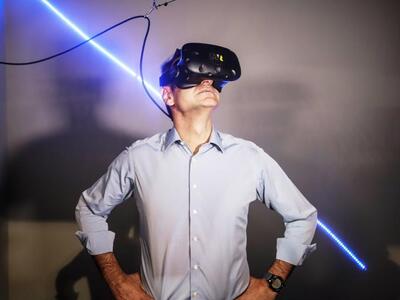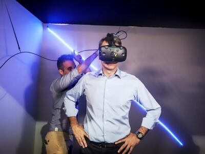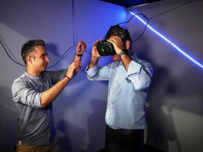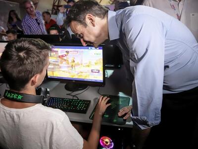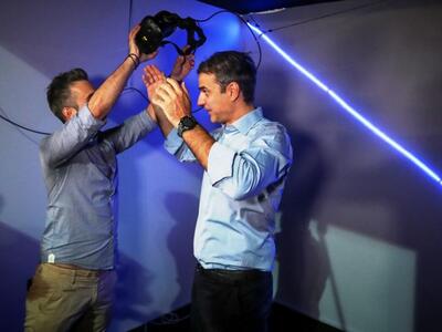 Ο κ.Μητσοτάκης φορώντας ειδικά γυαλιά, έπαιξε σε παιχνίδι εικονικής πραγματικότητας, ενώ χαιρέτισε αρκετούς νέους και νέες με τους οποίους έβγαλε selfies.