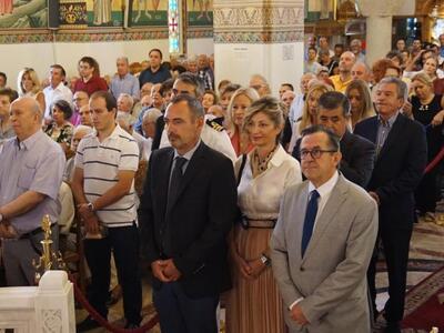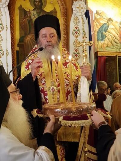Ἐπίσης συνεχάρη τόν Προϊστάμενο τοῦ Ἱεροῦ Ναοῦ π. Ἑρμόλαο Μασσαρᾶ καί τούς Συνεφημερίους του καί τούς λοιπούς Συνεργάτας του, γιά τήν ὃλη πνευματική, κοινωνική, καί φιλανθρωπική διακονία τους.