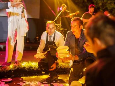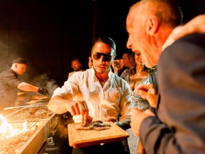 Η έκπληξη της βραδιάς ανακοινώθηκε από τον Αντώνη Ρέμο όπου ξαφνικά προσκάλεσε τους καλεσμένους του να μεταφερθούν στον ειδικά διαμορφωμένο χώρο όπου «έψησε & αλάτισε» με τον δικό του μοναδικό τρόπο ο Mr. Salt Bae Nusret, στενός φίλος του Αντώνη Ρέμου.