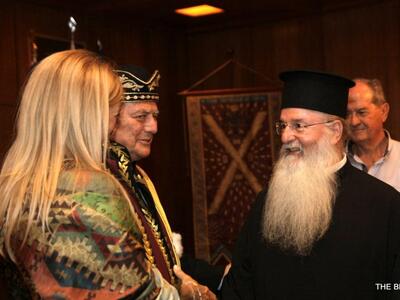 Ο Αριστείδης Αντσακλής σε αναμνηστική φωτογραφία, περιστοιχιζόμενος από την σύζυγό του (αριστερά) και τις κόρες του (δεξιά)