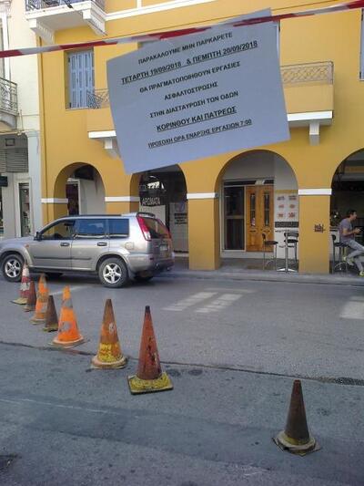Εργασίες ασφαλτόστρωσης πραγματοποιούνται αυτές τις μέρες σε πολύ κεντρικά σημεία της Πάτρας με συνέπεια να έχουν μπει προειδοποιητικά σημειώματα που ζητούν από τους οδηγούς να μην παρκάρουν εκεί τα οχήματα τους.