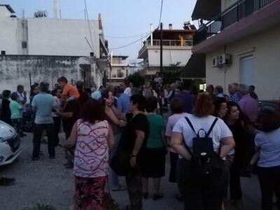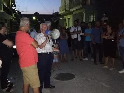 Μαθητές και γονείς συγκεντρώθηκαν στη συμβολή της Εγλυκάδος με την Παρασκευοπουλου και φώναζαν συνθήματα όπως «όχι ακτινοβολία στην γειτονιά μας».