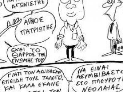 Στο σκίτσο, βλέπουμε να λέγονται διάφορα για τον Αλέκο Χρυσανθακόπουλο που ήταν και πρώην βουλευτής Αχαΐας, όπως ότι είναι ασυμβίβαστος, στο πλευρό της νεολαίας, αντιστέκεται στην παρακμή, είναι ενάντια στο κατεστημένο και έχει το θάρρος της γνώμης του.
