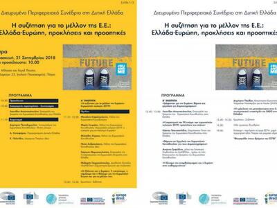 Το διήμερο Διευρυμένο Περιφερειακό Συνέδριο με θέμα «Η συζήτηση για το μέλλον της Ευρώπης: Ελλάδα- Ευρώπη, Προκλήσεις και Προοπτικές» είναι ένας ανοικτός διάλογος με φορείς και πολίτες της Δυτικής Ελλάδας για το κοινό ευρωπαϊκό μας μέλλον.