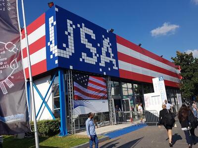 Οι Ηνωμένες Πολιτείες της Αμερικής συμμετείχαν στο περίπτερο 13, με 52 αμερικανικές εταιρείες κολοσσούς, κυρίως του τεχνολογικού κλάδου, όπως η Microsoft, η Google, η ORACLE, η Hewlett Packard, η Cisco, η Facebook και η Coca Cola, που παρουσίασαν τα σύγχρονα επιτεύγματά τους.