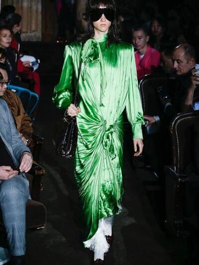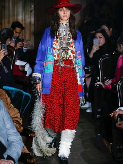 Τα fashion media μίλησαν για εμπνευσμένη κι εξωφρενική αναρχία αλλά οι εντυπώσεις του κοινού για ένα ύφος στα όρια του γελοίου. Το styling ήταν ξανά ένα εκκεντρικό «μπλέξιμο» εποχών, μοτίβων και πολιτισμικών στοιχείων. Eπί σκηνής τραγούδησε και το είδωλο του στυλ, Τζέιν Μπίρκιν. Η Σάλμα Χάγιεκ και οι πρεσβευτές του οίκου Τζάρεντ Λέτο και Φέι Ντάναγουέι ήταν εκεί για να χειροκροτήσουν το brand που δεν προτίθεται να κολακέψει, αλλά να σαρκάσει με τα στερεότυπα φύλων κι ενδυματολογικών κλισέ. (Πάντως συνεχίζει να "πουλάει" στη luxury trendy κατηγορία πρώτο στον κόσμο με στόχο να ξεπεράσει τη Louis Vuitton)