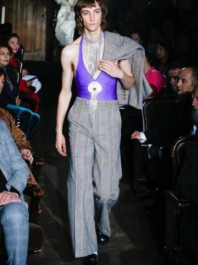 Στις μέρες που επικρατεί η άποψη πως «η ασχήμια είναι μόδα» και στον αντίποδα της ισχυρής ρομαντικής επιρροής του οίκου Dior ο «προφήτης» του παρανοικού Gucci mix & match Alessandro Michele εγκατέλειψε την έδρα του, το Μιλάνο και για πρώτη φορά εντάχθηκε στην Paris Fashion Week. Με φόντο το θρυλικό Theatre Le Palace δηλαδή το γαλλικό Studio 54, που έχει συνδεθεί με το ξεφάντωμα της Γκρέις Τζόουνς ντυμένης με Mugler, προκάλεσε ακόμα μια φορά. Οι άντρες μοντέλα πλησίασαν ανατρεπτικά τη γυναικεία γκαρνταρόμπα και οι γυναίκες ντύθηκαν με εμπνεύσεις τις Τζάνις Τσόπλιν και Ντόλι Πάρτον.