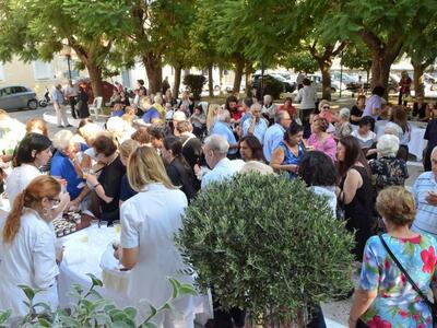 Μετά το τέλος της λιτάνευσης τα χορευτικά τμήματα του Εκπολιτιστικού Συλλόγου Λεύκας απέδωσαν παραδοσιακούς και λαϊκούς χορούς από διάφορα διαμερίσματα της χώρας, στους οποίους τους ακολούθησαν πολλοί περιθαλπόμενοι, εργαζόμενοι αλλά και φίλοι του Ιδρύματος.