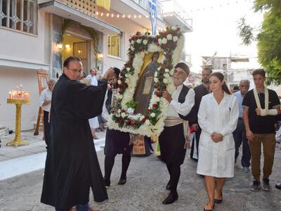 Ακολούθησε λιτάνευση της εικόνας της Αγίας Ευφροσύνης, περιμετρικά της πλατείας Παντοκράτορος. Προηγήθηκε η Μουσική Μπάντα του Δήμου Πατρέων και ακολουθούσαν οι Ιερείς , τα Μέλη του Διοικητικού Συμβουλίου, οι εργαζόμενοι , οι περιθαλπόμενοι και φίλοι του Ιδρύματος.
