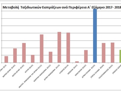 Πιο συγκεκριμένα, το Β΄ τρίμηνο 2018 σε σχέση με το περσινό αντίστοιχο τρίμηνο, η ΠΔΕ σημείωσε τη μεγαλύτερη ποσοστιαία αύξηση σε ταξιδιωτικές εισπράξεις στο σύνολο των Ελληνικών Περιφερειών, κατά 55,49%, με τον Ελληνικό μέσο όρο να βρίσκεται στο 17,69%. Η, για δεύτερο τρίμηνο,εξαιρετική απόδοση, είχε ως αποτέλεσμα η Περιφέρεια Δυτικής Ελλάδας να έχει σημειώσει τη μεγαλύτερη ποσοστιαία αύξηση σε ταξιδιωτικές εισπράξεις στο σύνολο των Ελληνικών Περιφερειών για όλο το Α΄ Εξάμηνο 2018 σε σχέση με το αντίστοιχο περσινό- κατά 73,12% (με τον εθνικό μέσο όρο στο 17,26%).