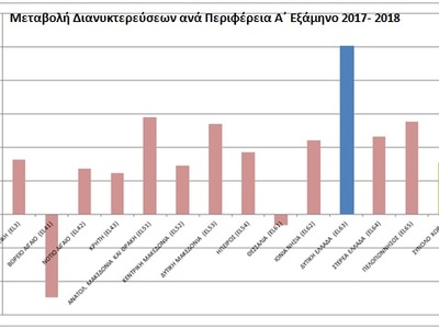 Τέλος, με βάση τα δημοσιευθέντα στοιχεία της Τράπεζας της Ελλάδας, στην Περιφέρεια Δυτικής Ελλάδας οι διανυκτερεύσεις, το Β΄ Τρίμηνο 2018, σε σχέση με το αντίστοιχο περσινό, αυξήθηκαν από 724,5 χιλ. σε 997,6 χιλ.- ποσοστιαία αύξηση κατά 37,71%, όταν ο Ελληνικός Μ.Ο. ήταν 16,18%. Με αυτό τον τρόπο οι διανυκτερεύσεις ξεπέρασαν εντυπωσιακά το «φράγμα» του 1.000.000, αριθμώντας 1.379,7 χιλ. σε σχέση με τις 918,1 χιλ το περσινό Α΄ εξάμηνο, σημειώνοντας τη μεγαλύτερη ποσοστιαία αύξηση μεταξύ των Ελληνικών Περιφερειών κατά 50,28%(15,46% Μ.Ο. Ελλάδας).