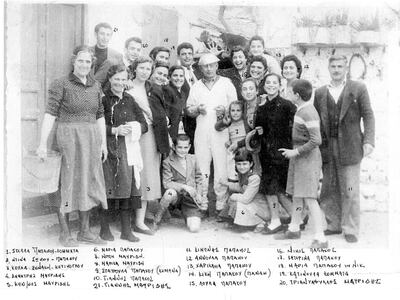 Ο Κίμωνας Παπάκος αδελφός του παππού του Νικολάκη στην πολυθρόνα πάνω αριστερα η γυναίκα του Ντινα....δίπλα η αδελφή του Κατερινα ..με τον άνδρα της Κώστα Μαυριδη