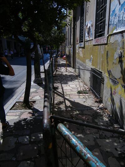Δεν έχουν περάσει μόνο μήνες αλλά χρόνια ολόκληρα οι σιδεριές στο πεζοδρόμιο τη συμβολή των οδών Μαιζώνος και Αράτου παραμένουν σταθερές στο σημείο ως σήμανση για την επικινδυνότητα λόγω της πτώσης σοβάδων απο το κτίριο του παλαιού αρχαιολογικού μουσείου της Πάτρας.