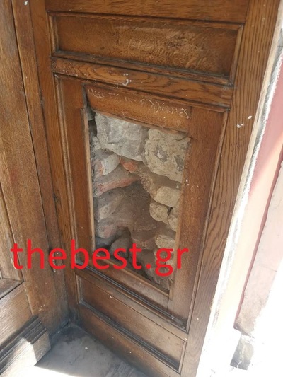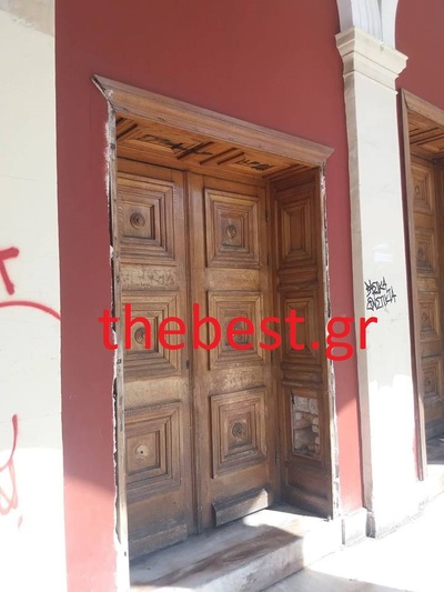 Απογοητευτική εί9ναι οι εικόνα του θεάτρου «Απόλλων», στην πλατεία Γεωργίου. Αυτή τη φορά, δεν έφταναν τα συνθήματα στους τοίχους του, άγνωστοι αφαίρεσαν τις ξύλινες επενδύσεις από την πόρτα και τις γέμισαν με σκουπίδια.