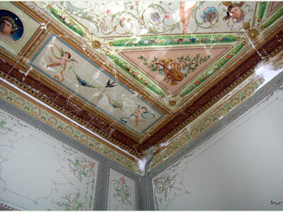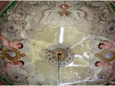 Με τις ξεθωριασμένες τοιχογραφίες και οροφογραφίες, φτιαγμένες από τα χέρια Ιταλών καλλιτεχνών, παραδομένες στη φθορά του χρόνου, με τα στρουμπουλά αγγελάκια να σου χαμογελούν και τον γκριζαρισμένο κύριο, να σε κοιτάει βλοσυρά, σα να σου υπενθυμίζει πως κάποτε εδώ μέσα, πάτησαν το πόδι τους βασιλείς και βασίλισσες, μεγαλέμποροι, τραπεζίτες και βιομήχανοι, οι οποίοι θέλησαν να αποτυπώσουν τον πλούτο και την εξουσία τους, σε κάποια τετραγωνικά μέτρα ενός εντυπωσιακού κτιρίου.