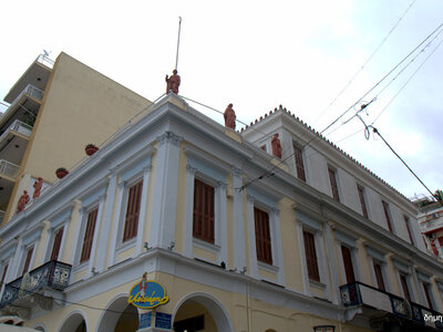 Το επιβλητικό νεοκλασικό κτίριο του «Ερμή» στο πάνω μέρος της πλατείας Γεωργίου, επί της Γεροκωστοπούλου, αποτελεί ένα αρχιτεκτονικό κόσμημα, «κληροδότημα στην Πάτρα, της άλλοτε ακμάζουσας αστικής τάξης, που πλούτισε από το εμπόριο σταφίδας, στα τέλη του 19ου και στις αρχές του 20ου αιώνα.