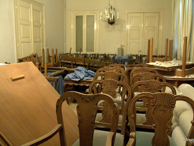 Η κεντρική αίθουσα του «Ερμή» όπου δίνονταν δεξιώσεις, χοροί αλλά και πάρτι μέχρι να πληγεί το κτίριο από το σεισμό