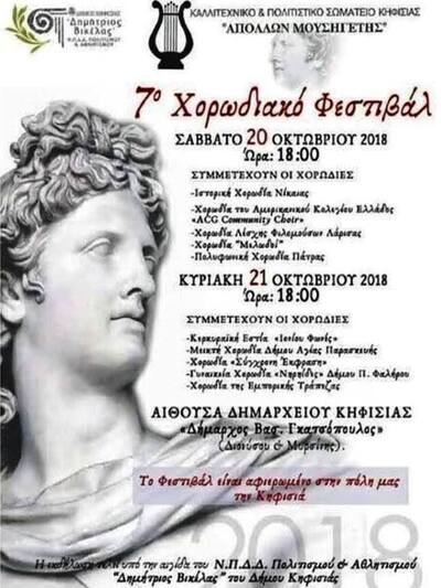 Αναχωρεί το προσεχές Σάββατο 20 Οκτωβρίου για την Κηφισιά, η 60μελής ΜΙΚΤΗ ΧΟΡΩΔΙΑ της ΠΟΛΥΦΩΝΙΚΗΣ, προκειμένου να λάβει μέρος στο 7ο Χορωδιακό Φεστιβάλ, που οργανώνει το Καλλιτεχνικό και Πολιτιστικό Σωματείο Κηφισιάς, ‘’Απόλλων Μουσηγέτης’’ επί διήμερο και που γνωρίζει κάθε χρόνο μεγάλη επιτυχία.