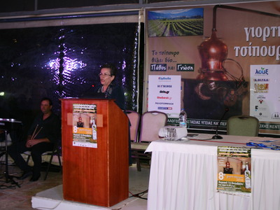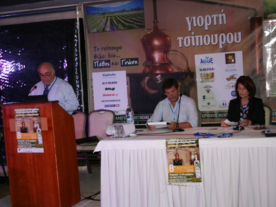 Η κα. Θεοδωροπούλου μέσα στα άλλα ανεφέρθη και στους σκοπούς της εκδήλωσης, αλλά και στα μηνύματα που εκπέμπει. Ευχαρίστησε τους ομιλητές και τους χορηγούς και καλωσόρισε τους παρευρισκόμενους. Καλωσόρισμα, απήυθυνε και ο κ. Κυπριανός και ανεφέρθη στη συνεργασία που επετεύχθη μεταξύ των Συλλόγων από διαφορετικά μέρη του νομού, με την ευκαιρία της γιορτής του τσίπουρου.