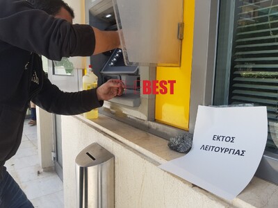 Οι άγνωστοι δράστες προκάλεσαν ρύπανση σε πέντε Α.Τ.Μ. χρηματοπιστωτικών ιδρυμάτων, τα οποία στεγάζονται σε διάφορα εμπορικά καταστήματα, στην Πάτρα, ρίχνοντας μπογιά ερυθρού χρώματος ή προκαλώντας μαύρισμα.