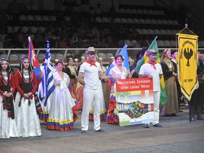 Η εκδήλωση ξεκίνησε με την παρέλαση των χορευτών περιμετρικά του γηπέδου με τα λάβαρα των συλλόγων τους προκαλώντας ένα υπέροχο θέαμα που κέρδισε το θερμό χειροκρότημα του κόσμου.