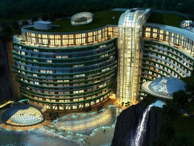 Ένα σύγχρονο αρχιτεκτονικό θαύμα. Το InterContinental Shanghai Wonderland δεν προσφέρει θέα σε πόλη, σε βουνοκορφές, σε παραλίες. Προσφέρει κάτι διαφορετικό: θέα στον «κάτω κόσμο».Στην πόλη Σονγκτζιάνγκ, 35 χιλιόμετρα νοτιοδυτικά της Σαγκάης, οικοδομήθηκε σε διάστημα μιας δεκαετίας σε ένα εγκαταλελειμμένο λατομείο, βάθους 88 μέτρων. Εγκαίνια έγιναν αυτόν τον μήνα. Διαθέτει 337 δωμάτια, σε 18 ορόφους, οι 16 εκ των οποίων είναι κάτω από την επιφάνεια του εδάφους και οι δύο μέσα στο νερό.