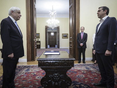 Ενώπιον του Προέδρου της Δημοκρατίας, Προκόπη Παυλόπουλου, ορκίστηκε πριν από λίγο στο Προεδρικό Μέγαρο, με πολιτικό όρκο, ο πρωθυπουργός, Αλέξης Τσίπρας, νέος υπουργός Εξωτερικών.