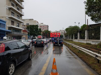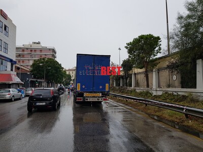 Από το βράδυ της Δευτέρας και μέχρι το πρωί της Δευτέρας είχε ξεμείνει σε αυτή τη θέση το βαρύ όχημα της φωτογραφίας. Τράκτορας με συρόμενο τμήμα, ξέμεινε ενώ κινούνταν στο κέντρο της Πάτρας και ειδικότερα στην Οθωνος Αμαλίας στο ύψος της Βότση.