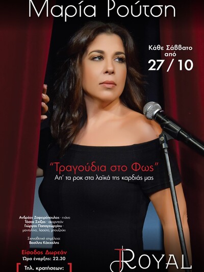 Το Steak Bar του Royal υποδέχεται το φετινό χειμώνα την Μαρία Ρούτση με τη μουσική παράσταση " Τραγούδια στο Φως ".