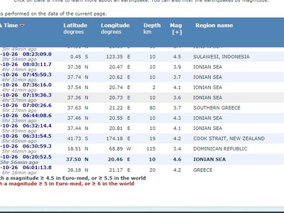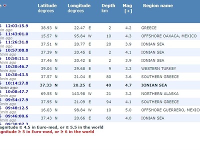 Στους παρακάτω πίνακες του Ευρωπαϊκού Μεσογειακού Σεισμολογικού Κέντρου καταγράφεται η έντονη μετασεισμική δραστηριότητα που ταρακουνάει ακόμα πολλές περιοχές.