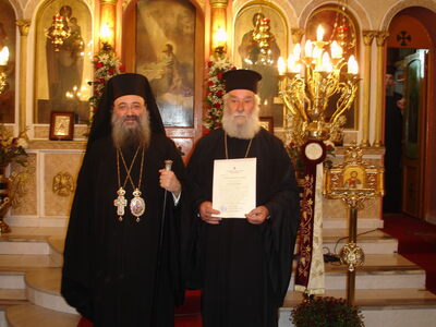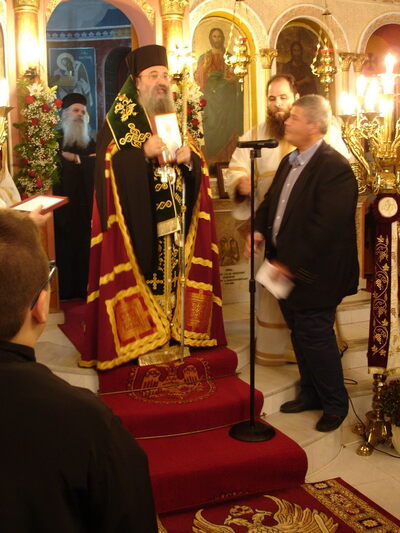 Τὸν Σεβασμιώτατο Μητροπολίτη Πατρῶν κ.κ. Χρυσόστομο εὐχαρίστησε μὲ λόγια θερμὰ ὁ Δήμαρχος Δυτικῆς Ἀχαΐας, ὁ ὁποῖος και προσφώνησε μὲ συγκίνηση τὸν τιμηθέντα Ἱερέα καὶ τοῦ προσέφερε τιμητικὴ πλακέτα.