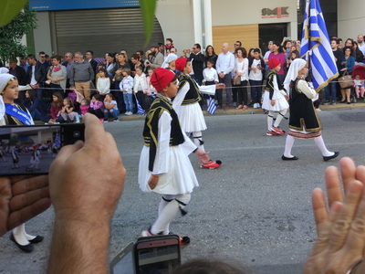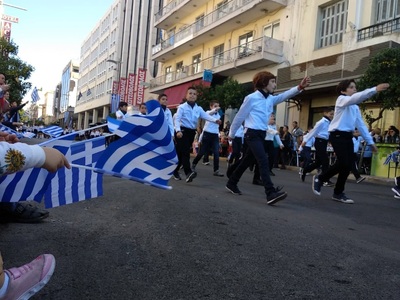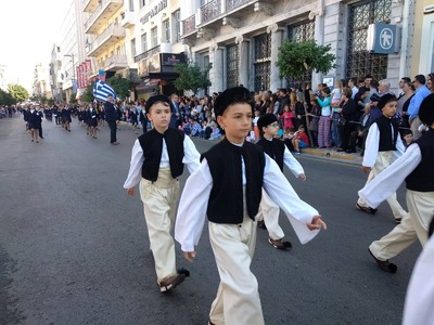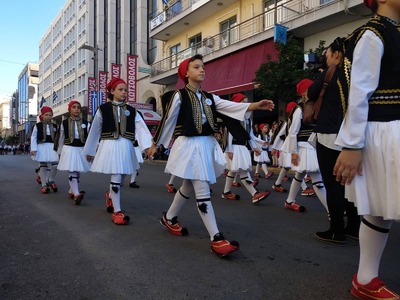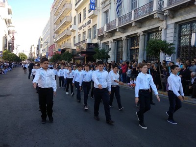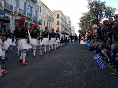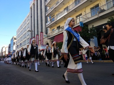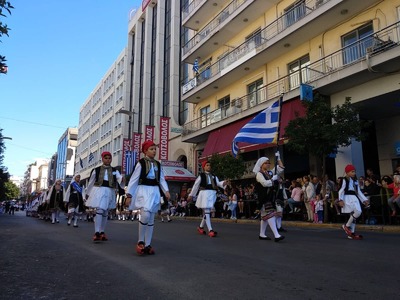 Νέοι και νέες, με εθνική υπερηφάνεια, με παραδοσιακές στολές και με σταθερό βήμα, παρελαύνουν στο κέντρο της Αχαϊκής πρωτεύουσας, ενώ τους παρακολουθούν, εκατοντάδες φίλοι, γνωστοί και συγγενείς.