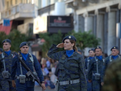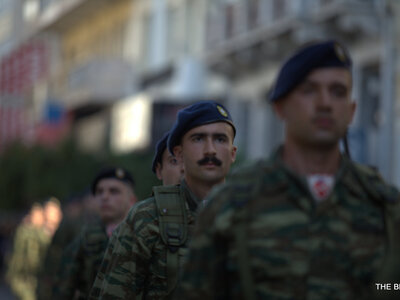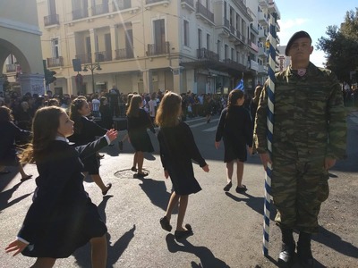 Αρκετός ο κόσμος στο κέντρο της Πάτρας που παρακολουθεί την παρέλαση των μαθητών, των στρατιωτών και των Σωμάτων Ασφαλείας.