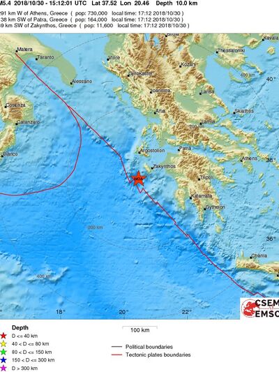17.30: Σεισμικής δόνηση εντάσεως 5.6 βαθμών της κλίμακας Ρίχτερ, σύμφωνα με το Ευρωμεσογειακό σεισμολογικό κέντρο, σημειώθηκε στις 17.12 το απόγευμα της Τρίτης, στη θαλάσσια περιοχή ανοικτά της Ζακύνθου, σε απόσταση 46 χιλιομέτρων νοτιοδυτικά του νησιού. Ο σεισμός έγινε ιδιαίτερα αισθητός στην Πάτρα λόγω του μικρού εστιακού βάθους που ήταν 10 χιλιόμετρα.