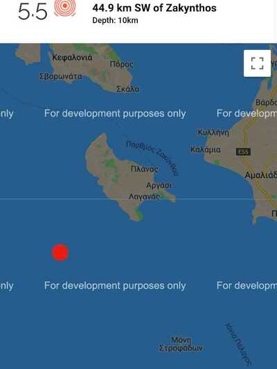 Τα ξημερώματα και πιο συγκεκριμένα στις 04:59 είχε σημειωθεί ισχυρή σεισμική δόνηση 5,4 Ρίχτερ σε μια περιοχή 44 χιλιόμετρα δυτικά-νοτιοδυτικά της Ζακύνθου και 294 χιλιόμετρα δυτικά της Αθήνας και εστιακό βάθος 5,8 χιλιόμετρα.