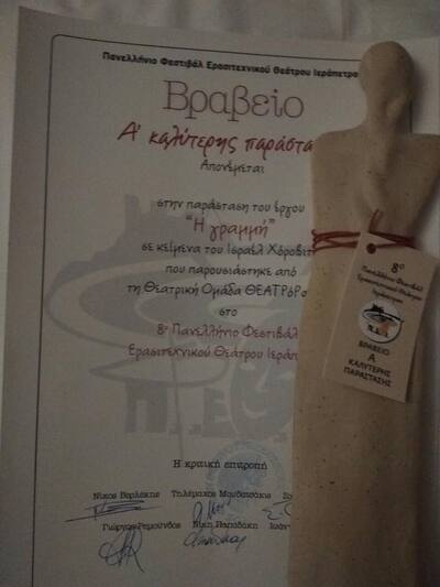 Πιο συγκεκριμένα, στο 8ο Πανελλήνιο Φεστιβάλ Ερασιτεχνικού Θεάτρου στην Ιεράπετρα, στο οποίο συμμετείχαν συνολικά επτά θεατρικές ομάδες από την Ελλάδα και την Κύπρο, οι αστυνομικοί της ΘΕΑΤΡόPolice, παρουσίασαν την παράσταση «Η γραμμή» του Ίσραελ Χόροβιτς σε σκηνοθεσία της Γιούλης Μαρούση αποσπώντας τέσσερα βραβεία: