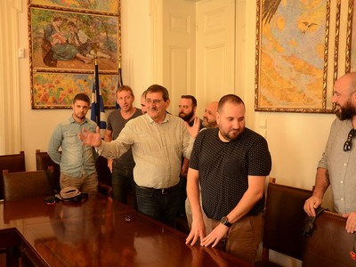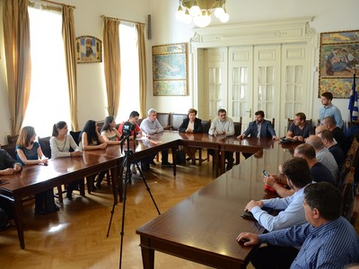 Τον Δήμαρχο Πατρέων, Κώστα Πελετίδη, επισκέφθηκαν σήμερα στο Δημαρχείο Γάλλοι συνδικαλιστές - εκπρόσωποι των Εργατικών Κέντρων της 4ης Περιφέρειας του Παρισιού και του Εργατικού Κέντρου της Μασσαλίας.