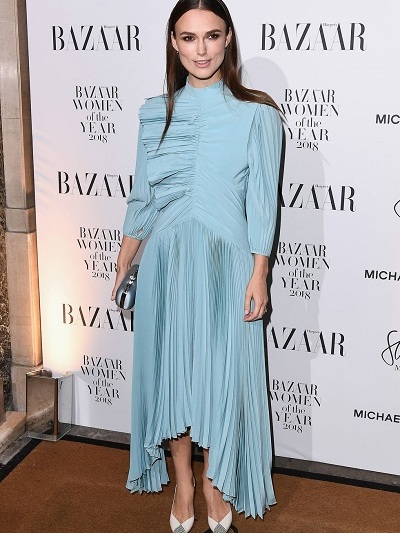 Εχουμε και λέμε: Η Κίρα Νάιτλι με νεωτεριστικό long midi dress σε γαλάζιο τόνο και «αόρατο» μακιγιάζ ήταν στο επίκεντρο της προσοχής κατακτώντας την κορυφαία διάκριση της καλύτερης «British Actress».