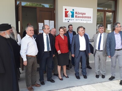 Σε μία σεμνή τελετή που οργανώθηκε από τον Δήμο, έγιναν χθες τα εγκαίνια της λειτουργίας του Κέντρου Κοινότητας με διευρυμένη δράση παραρτήματος στήριξης Ρομά Δ. Ερυμάνθου, το οποίο φιλοξενείται σε χώρο του ανακαινισμένου κτιρίου του παλαιού Δημοτικού σχολείου Χαλανδρίτσας.