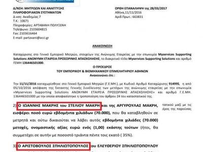 «Ύστερα από την 05/10/2016 Γενική Συνέλευση ο κ. Μακρής Ιωάννης ανακοίνωσε στη Γενική Συνέλευση ότι επιθυμεί να μην συμμετέχει στην καταβολή του αρχικού μετοχικού κεφαλαίου, με αποτέλεσμα να αποχωρήσει από την εταιρεία».