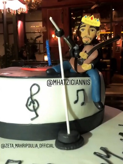 Ο Μιχάλης, έσβησε τα κεράκια του πάνω σε μια τούρτα-υπερπαραγωγή, η οποία δημιουργήθηκε ειδικά για εκείνον και είχε πάνω νότες, αλλά και… τον ίδιο, φτιαγμένο από ζαχαρόπαστα, να κρατά μια κιθάρα.
