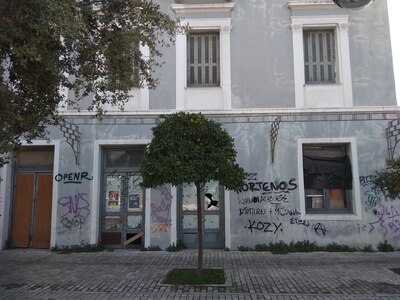 Πίσω απ΄ το (πρόσφατα ανακαινισμένο) εμβληματικό ρολόι της Πλατείας Τριών Συμμάχων, υπάρχει αυτό το στολίδι της Πάτρας, το οποίο όμως αν πλησιάσεις σε πιάνει θλίψη και αποστροφή, ειδικά για το ισόγειο. Δεν είναι κρίμα η πρώτη βιτρίνα της Πάτρας σε όποιον φτάνει στο Σιδηροδρομικό Σταθμό και στο λιμάνι να είναι σε τέτοια κατάσταση και εγκατάλειψη; Επιπλέον τα σπασμένα τζάμια στα παράθυρα, εγκυμονούν κινδύνους για τους περαστικούς και πειρασμούς για άστεγους κλπ ! Έτσι δεν είναι;