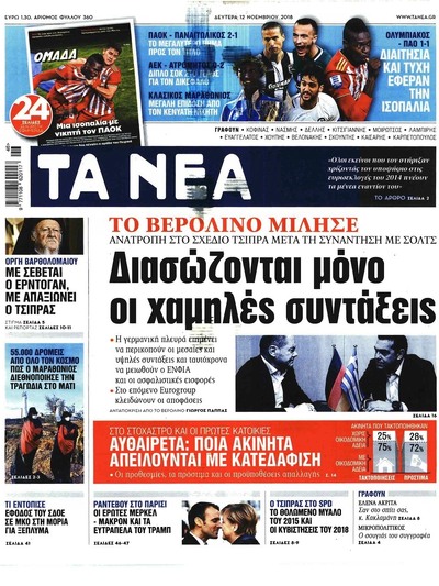 «Μέσα σε λίγες ώρες κατάφερε να διαψευσθεί κατηγορηματικά τόσο από το Πατριαρχείο για τους δήθεν διαλόγους του Οικουμενικού Πατριάρχη με τον υπουργό Παιδείας, όσο και από τον Γερμανό υπουργό Οικονομικών, που χαρακτήρισε το πρωτοσέλιδό τους για τις συντάξεις "αποκύημα φαντασίας".