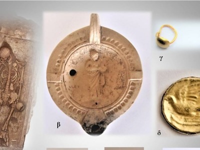 Πιο συγκεκριμένα, στο χώρο του νεκροταφείου, όπου «πραγματοποιήθηκαν τομές περιμετρικά του δίχωρου υπέργειου ρωμαϊκού ταφικού μνημείου και της υποκείμενης αυτού δεξαμενής ελληνιστικών χρόνων, που ανασκάφηκαν το 2016 και 2017», φέτος εντοπίστηκαν επτά νέοι τάφοι. Τέσσερις από αυτούς χρονολογούνται στους ρωμαϊκούς χρόνους και βρίσκονται βόρεια του ταφικού μνημείου, εντός των ρωμαϊκών ταφικών περιβόλων.
