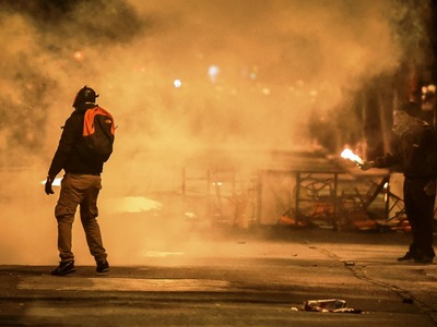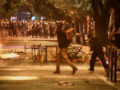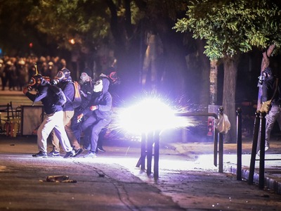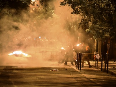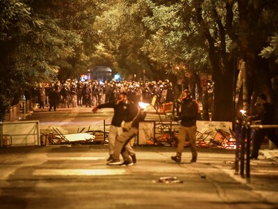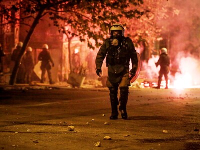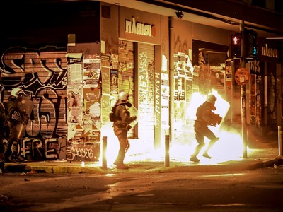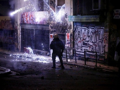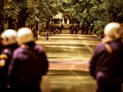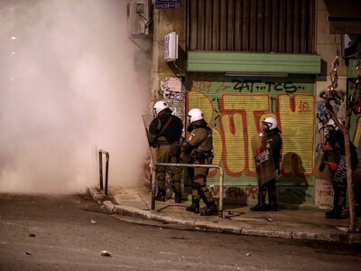 Ειδικό όχημα της ελληνικής αστυνομίας κάνει αυτή την ώρα ρίψεις νερού επί της οδού Πατησίων προς την πλευρά του Πολυτεχνείου όπου είναι συγκεντρωμένα αρκετά άτομα. Τα άτομα αυτά πετούν δεκάδες βόμβες μολότοφ, πέτρες και κομμάτια από μάρμαρα κατά των αστυνομικών δυνάμεων που από την πλευρά τους κάνουν ρίψεις χειροβομβίδων κρότου λάμψης καθώς και δακρυγόνων προκειμένου να απομακρύνουν τους ταραξίες. Παράλληλα, σε πλήρη εξέλιξη είναι τα επεισόδια στην ευρύτερη περιοχή των Εξαρχείων.