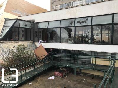 Το φως της ημέρας αποκάλυψε τις εικόνες ντροπής. Η Σχολή έχει υποστεί σοβαρές ζημιές. Σπασμένα πεζοδρόμια, πλακάκια βγαλμένα, τζαμαρίες που έγιναν θρύψαλα, εστίες φωτιάς.