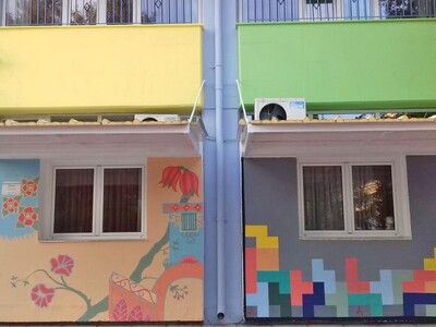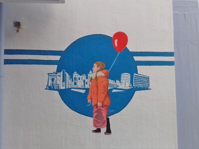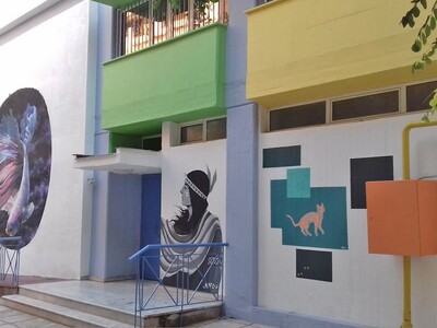 Όχι δεν είστε σε γκαλερί, μα στο προαύλιο του 87ου δημοτικού σχολείου Θεσσαλονίκης που βρίσκεται στην οδό Μαρία Κάλλας, έναντι του Μεγάρου Μουσικής Θεσσαλονίκης.