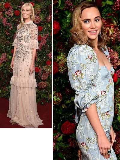 Μας άρεσαν επίσης οι αμφιέσεις του μοντέλου Σούκι Γουότερχάουζ με ρομαντικό φόρεμα Roksanda, της ηθοποιού Κλερ Φόι με δαντελένια δημιουργία Alexander Mc Queen καθώς και η Tζόλι Ρίτσαρντσον με τούλινο, κεντητό Needle & Thread. Παρούσα με κινέζικο εμπριμέ και γούνα η βρετανικής καταγωγής διευθύντρια της αμερικάνικης Vogue Aννα Γουίντουρ με την κόρη της.