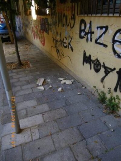 Η κατάσταση του κτιρίου ωστόσο είναι όχι μονό απογοητευτική αλλά κι επικίνδυνη αφού πέφτουν στα πεζοδρόμια ολόκληρα τμήματα τοίχου από την πλευρά της οδού Παρθενάκου ενώ αποκλεισμένη παραμένει η οδός Γκότση αφού η διάβαση πεζών κρίθηκε επικίνδυνη.
